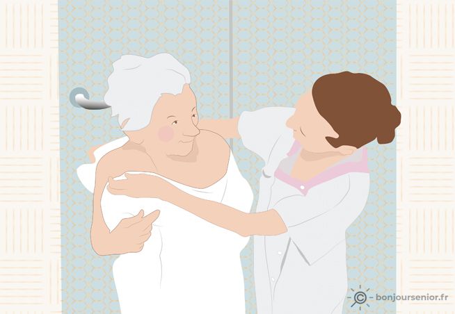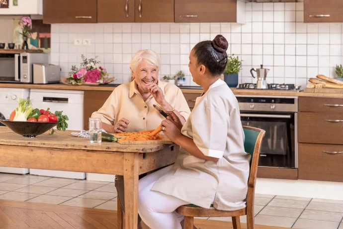 👉 Auxiliaire de vie aidant une personne âgée à domicile